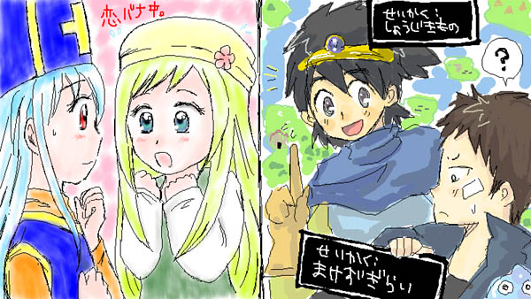 わたしは、さゐこさんのオリキャラ・コモモちゃんと、うちのDQ3僧侶・エレナを描かせて頂きました。2人は恋する乙女