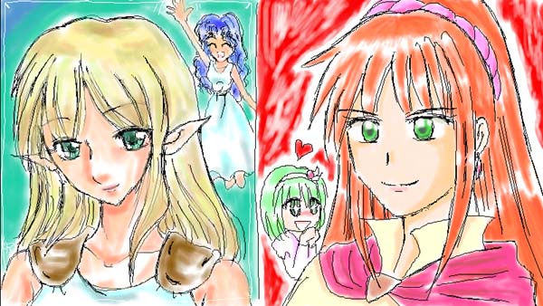 りんなさんが描いて下さったのは、エルフのヒルデと水の精霊アクアマリンです。