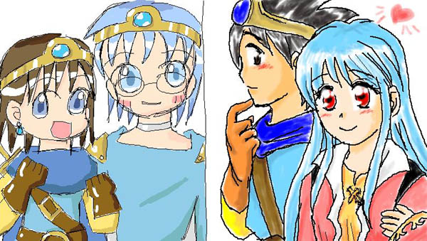 勇者アリス&賢者キャロル(左)→空飛び猫さん 勇者アスル&僧侶エレナ(右)→うめ吉