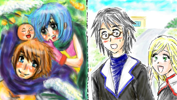 わたしが描かせて頂いたのは、アルフレート君とキリィちゃん。設定を教えていただき、キリィちゃんの