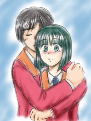 碧ちゃんを後ろから抱き締める上岡くん。実はコレの下絵は、「1」プレイ当時に
