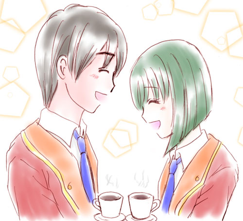 コーヒーを飲みながら語り合うラブラブな進碧を描きました。