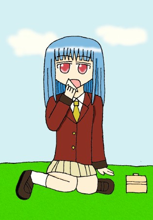 学校のお昼休みでしょうか?少女の日常風景といったほのぼの感に和みます♪(うめ吉)