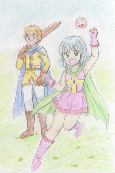 彩川りんなさんのリクエストで描いた、うちのシェルと、りんなさんのオリキャラ
