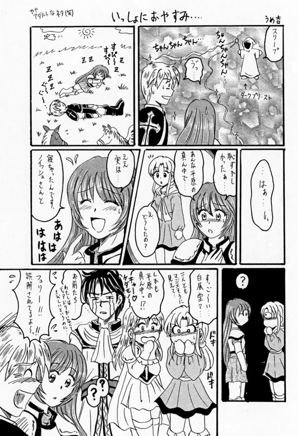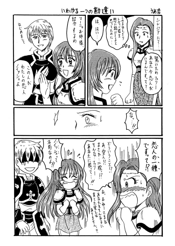 2005年に発行したノイッシュ×フュリー本「ONEWAY←→ONEWAY+」に収録した 1Pマンガをお披露目してみました。FE聖戦にハマり直して間もなく同志様と共に 急に作ることになり、それまで抑圧していた想いを発散しまくった思い出深い1冊ですねぇ。