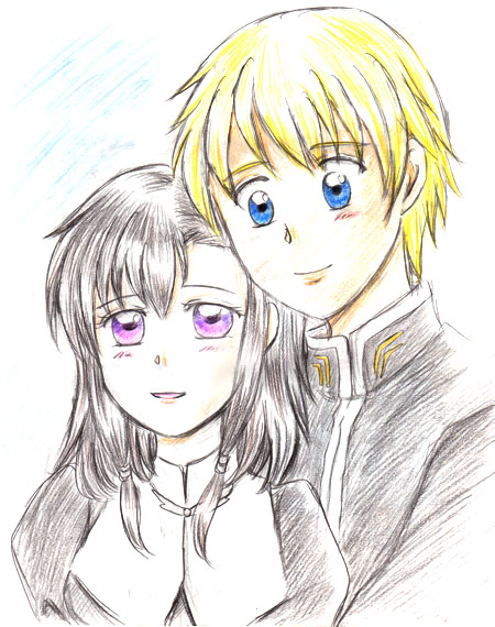 アニメ『とある飛空士への恋歌』より、主人公カルエルとヒロインのクレア。