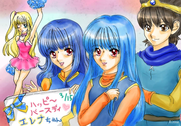 エレナを取り巻くのは勇者アスル、そしてりんなさん宅の僧侶リーナちゃんと、サイトの看板娘