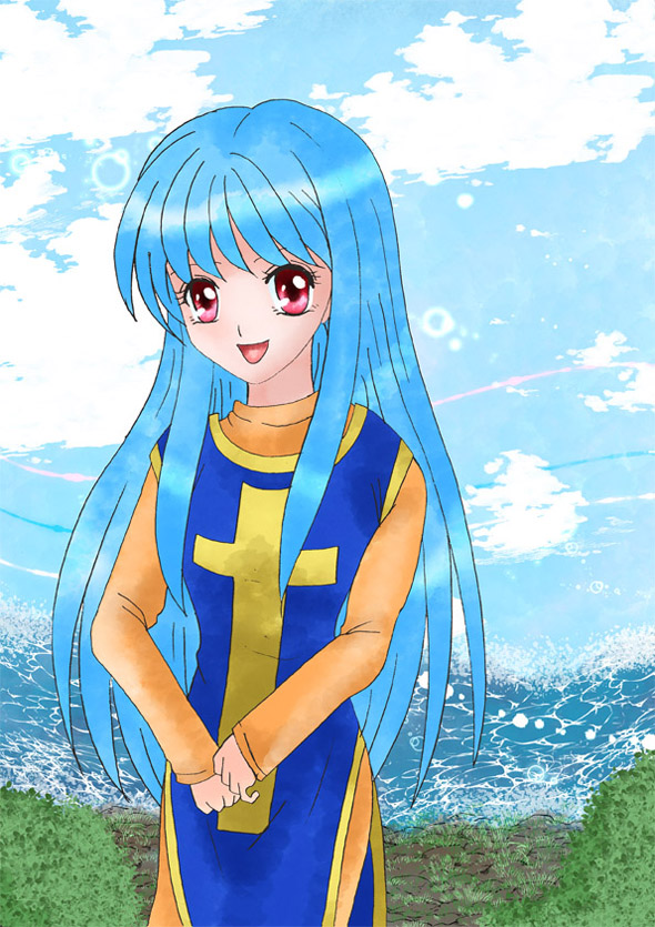 可憐な仕草と微笑み、晴れ渡った空を映したような長い髪…