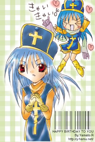 エレナで、奥はヤマトさんとこの僧侶ちゃん、名前はマリーちゃんだそうですvエレナを描いて