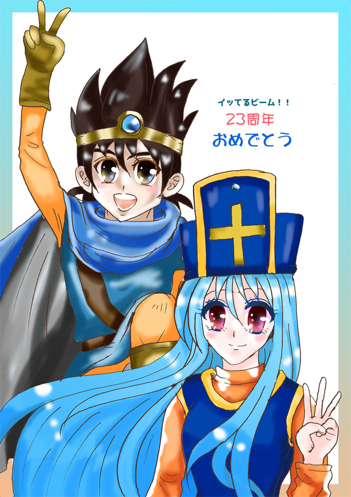 にっこり燦々 ☆彩川りんなさんより、当サイト23周年のお祝いに頂きました! アスルの明るい笑顔とエレナの可憐な微笑み、きらきら輝く大きな瞳に祝福されて 幸せいっぱいですvvこれからもサイトで活躍させてあげるよ〜!! (うめ吉) ★アスルとエレナが二人で仲良く指で23周年を表しているのですね! とっても微笑ましいです!!アスルがやや元気いっぱいな感じがするのは お祝い故でしょうか。エレナのなびく髪も爽やかです! (小太郎) 戻る