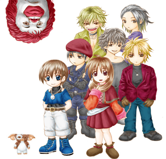 イメージばかりですが;;キャラの名前は一列目左から「グレムリン」のギズモ、「キングオブファイターズ」のクリス、